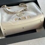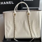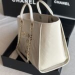Chanel Oil Wax Cowhide Leather Tote Bag White With Gold 66941