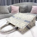 Dior Grey Dior Oblique Embroidery Medium Book Tote Bag M1286