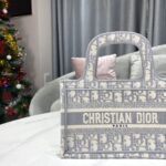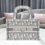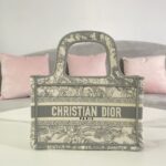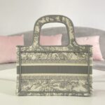 Dior Gray Toile de Jouy Embroidery Mini Dior Book Tote