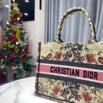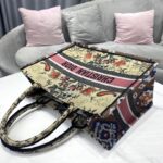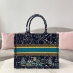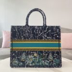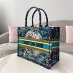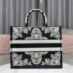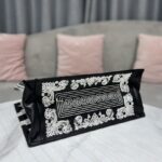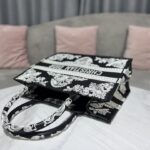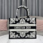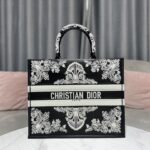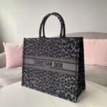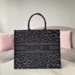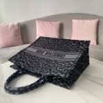 Dior Black Leopard Print Pattern Embroidery Large Dior Book Tote