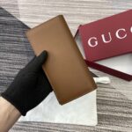 Gucci GG Emblem Collection With GG Pattern Fabric Long Card Clip Brown 818953