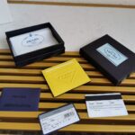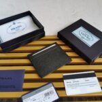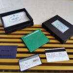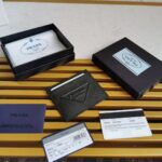 This Saffiano leather card holder stands out for its sleek design. Characterized by the center pocket and six slots, the accessory is decora...