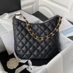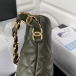 Chanel Diamond Plaid Lambskin Hobo Shoulder Bag Dark Green With Gold AS3631