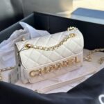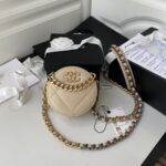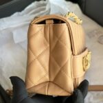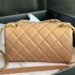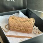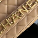 Chanel Diamond Plaid Lambskin Shoulder Bag Apricot With Gold AS1490