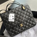 Chanel Diamond Plaid Caviar Cowhide Backpack Black With Gold AS0004
