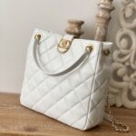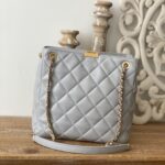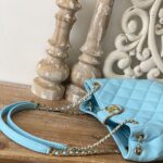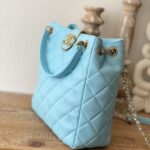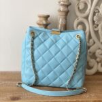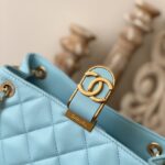 Chanel Diamond Plaid Lambskin Tote Bag Sky Blue With Gold AS3477