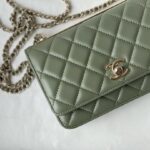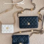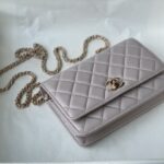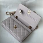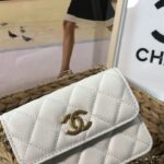 Chanel WOC Diamond Plaid Cowhide Gold Coin Chain Bag White With Gold A81205