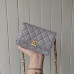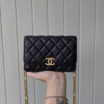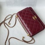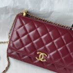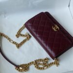 Chanel Woc Diamond Plaid Cowhide Chain Bag Red With Gold 2289