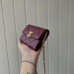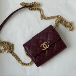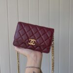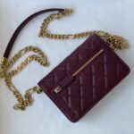 Chanel Woc Diamond Plaid Caviar Cowhide Chain Bag Wine Red With Gold 81155