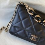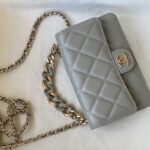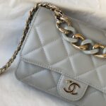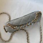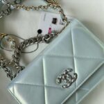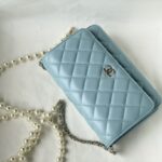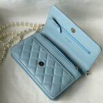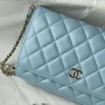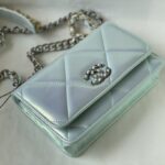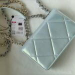 Chanel Woc Diamond Plaid Lambskin Chain Bag Mirage Blue With Sliver AS0957