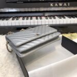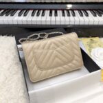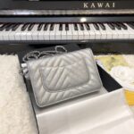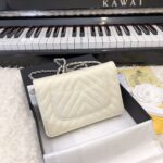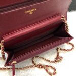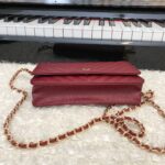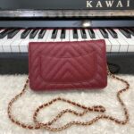 Chanel Woc V Plaid Caviar Cowhide Flap Bag Wine Red With Gold 33814