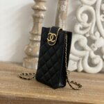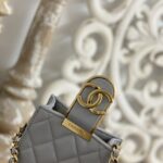 Chanel Diamond Plaid Lambskin Handle Flap Bag Black With Gold AS4035