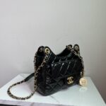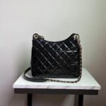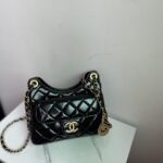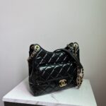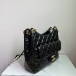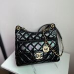 Chanel Diamond Plaid Cowhide Leather Shoulder Bag Black With Gold AS3710