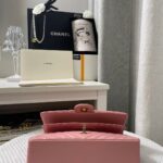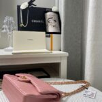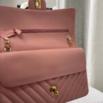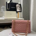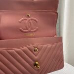 Chanel V Plaid Lambskin Classic Flap Bag Pink With Gold 01112