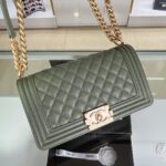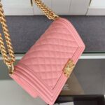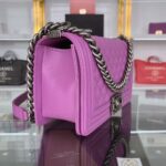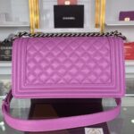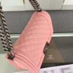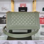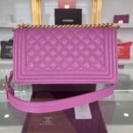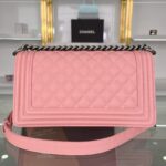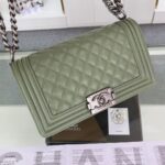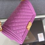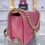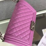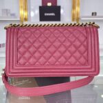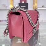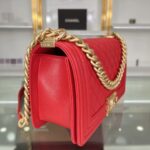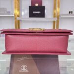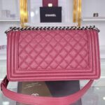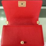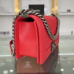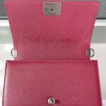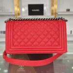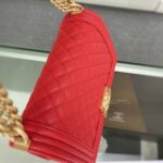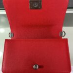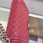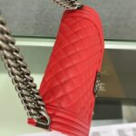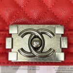 Chanel Diamond Plaid Caviar Cowhide BOY Handle Flap Bag Red With Silver A67086