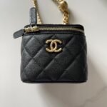 Chanel Diamond Plaid Caviar Cowhide Shopping Bag Black With Silver AS3980