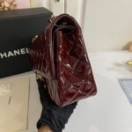 Chanel Diamond Plaid Patent Leather Classic Flap Bag Wine Red With Gold 1113