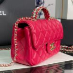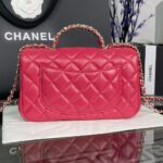 Chanel Diamond Plaid Lambskin Handle Flap Bag Red With Gold AS4141