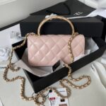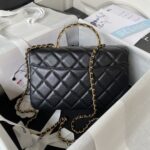 Chanel Diamond Plaid Cowhide Handle Flap Bag Black With Gold AS4233