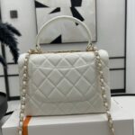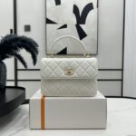 Chanel Diamond Plaid Lambskin Handle Flap Bag White With Gold 92236