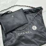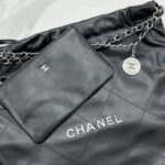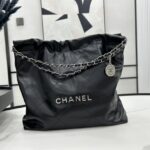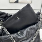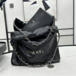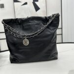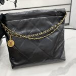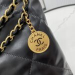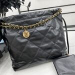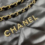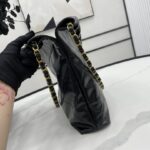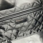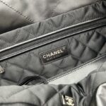 Chanel Diamond Plaid Oil Wax Cowhide Shopping Bag Black With Silver AS3261