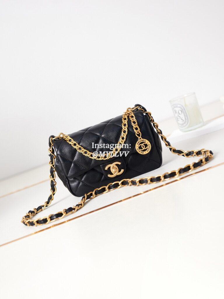 Chanel Diamond Plaid Lambskin Flap Bag Black With Gold AS4012