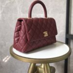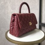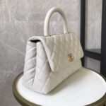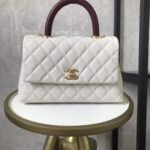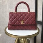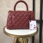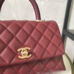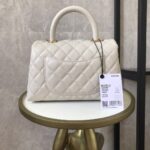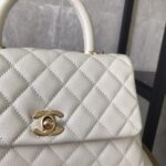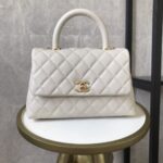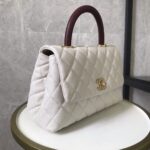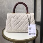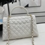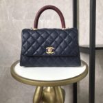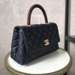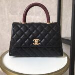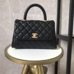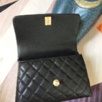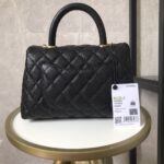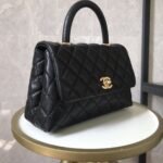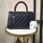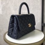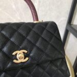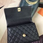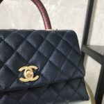 Chanel Diamond Plaid Caviar Cowhide Coco Lizard Skin Handle Bag Black With Gold A92990