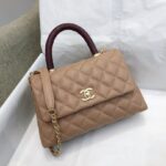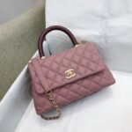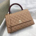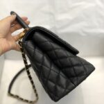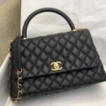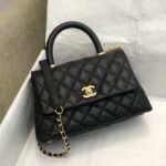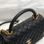 Chanel Diamond Plaid Caviar Cowhide Handle Bag All Black With Gold AS7148