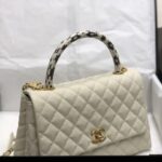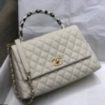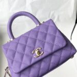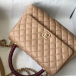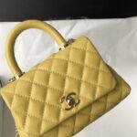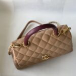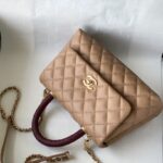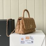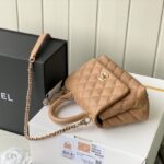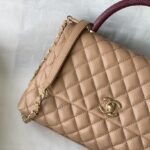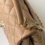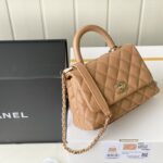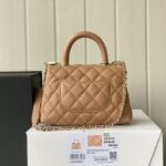 Chanel Diamond Plaid Caviar Cowhide Coco Handle Bag Caramel With Gold A07148