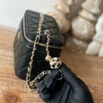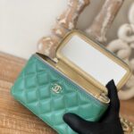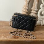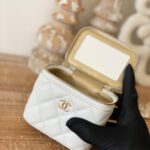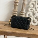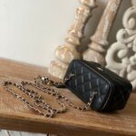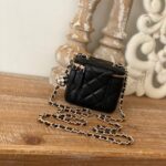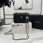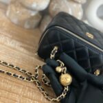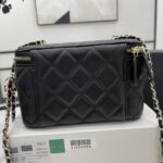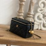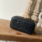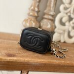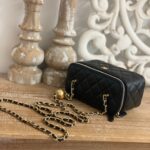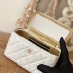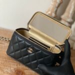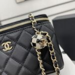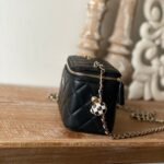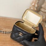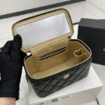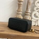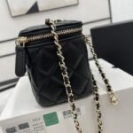 Chanel Diamond Plaid Lambskin Cosmetic Bag Black With Gold 81220