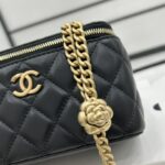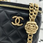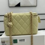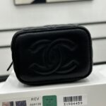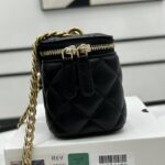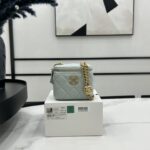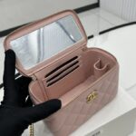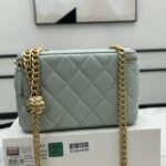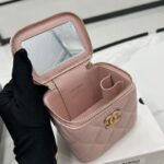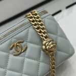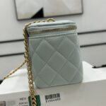 Chanel Diamond Plaid Lambskin Cosmetic Bag Light Blue With Gold A68140