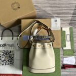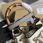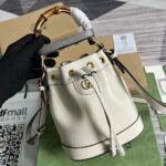 Combining recognizable elements of the House, the mini bucket bag is defined by its bamboo handles and Double G hardware. Crafted from White...
