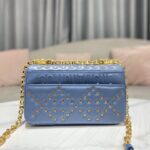 Dior Blue Lambskin Dior Caro Small Chain Bag
