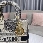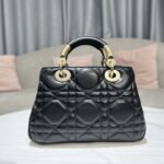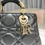 Dior Black Gold Cowhide Lady Dior Bag 0062-1
