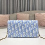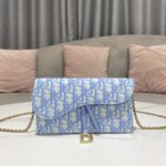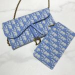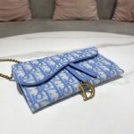 Dior Light Blue Dior Oblique Jacquard Long Saddle Wallet With Chain 803