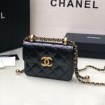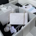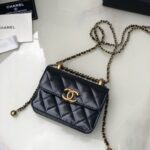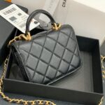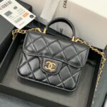 Chanel Diamond Plaid Lambskin Handle Flap Bag Black With Gold AP2200