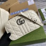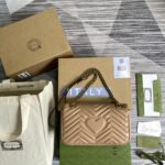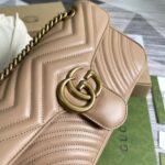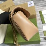 The softly structured shape of the small GG Marmont chain shoulder bag is defined by the antique gold-toned Double G hardware. The sliding c...