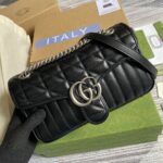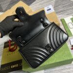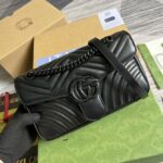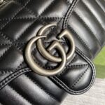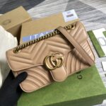 The softly structured shape of the small GG Marmont chain shoulder bag is defined by the antique gold-toned Double G hardware. The sliding c...