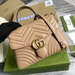 The small GG Marmont top handle bag has a softly structured shape and an oversized flap closure with Double G hardware. Made in matelassé ch...