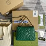 Gucci Green Matelassé Chevron Leather With A Heart GG Marmont Small Top Handle Bag 498110