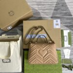 The small GG Marmont top handle bag has a softly structured shape and an oversized flap closure with Double G hardware. Made in matelassé ch...