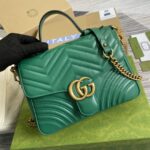Gucci Green Matelassé Chevron Leather With A Heart GG Marmont Small Top Handle Bag 498110
