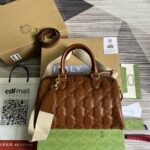 This brown shoulder bag mixes interpretations from different chapters of the House’s history. The allover GG pattern references an arc...