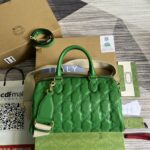 This green shoulder bag mixes interpretations from different chapters of the House’s history. The allover GG pattern references an arc...