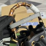 Combining recognizable elements of the House, the mini bucket bag is defined by its bamboo handles and Double G hardware. Crafted from black...