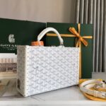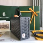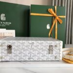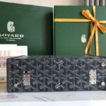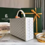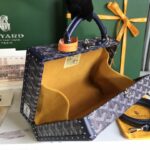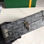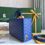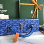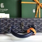 Goyard Goyardine Canvas Chevroches Calfskin Cowhide Grand Hôtel Box Bag Dark Blue 020015