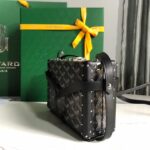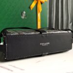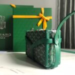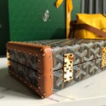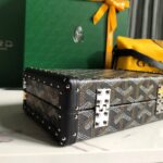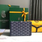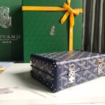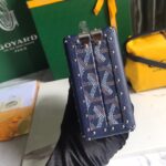 Goyard Goyardine Canvas Chevroches Calfskin Cowhide Minaudière Box Bag Dark Blue