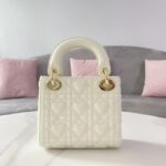 Dior White Lambskin Leather Small Dioramour Lady Dior Handbag