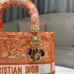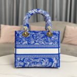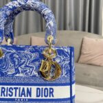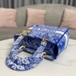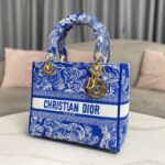 Dior Fluorescence Blue Pattern Embroidery Medium Lady D-Lite Handbag