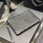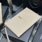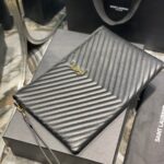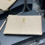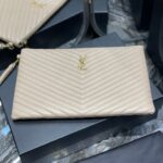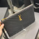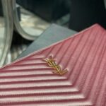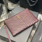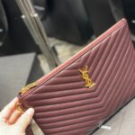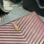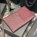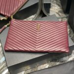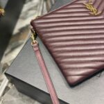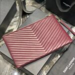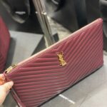 YSL Cowhide Leather Monogram Handle Bag Wine Red With Gold 440222
